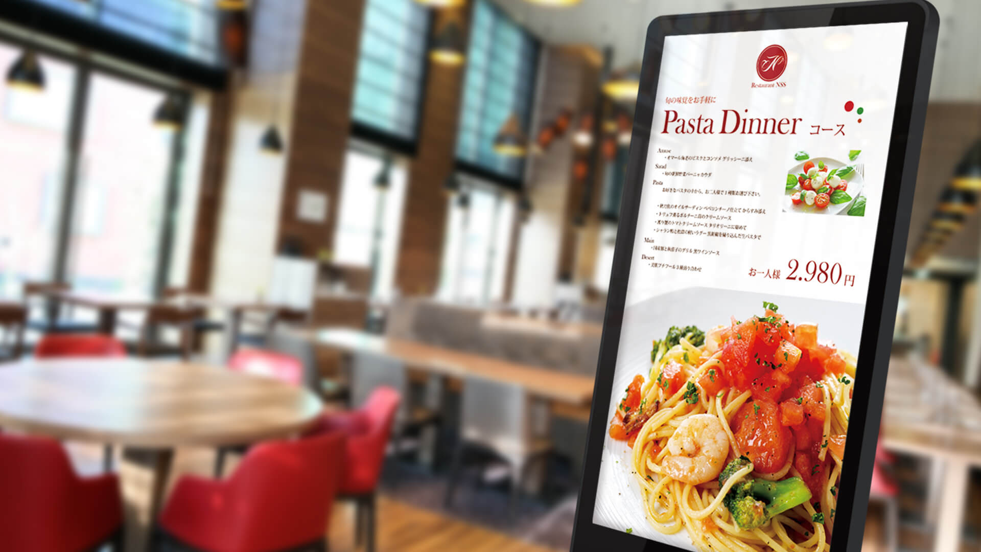 屋外用、タッチパネル、フルHD、縦置設置など様々な場所、用途に合わせて選択できます。